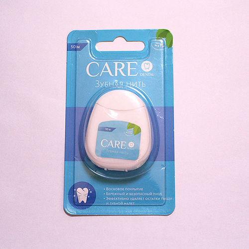 It is a 50-meter dental floss made from multi-filament nylon that is coated with a thin layer of food-grade wax and infused with a refreshing mint flavor. During use, the floss gently expands, increasing its cleaning surface and helping to remove plaque and food particles from between teeth and along the gumline more effectively than a standard narrow filament.